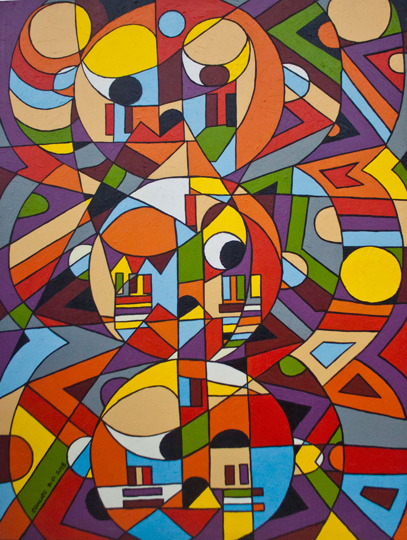 The painter ponders on the ways of the younger generation: their exuberance and comparable lack of culture. The setting is the artist’s usual brilliant lighted scheme of colours and design.