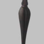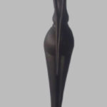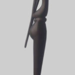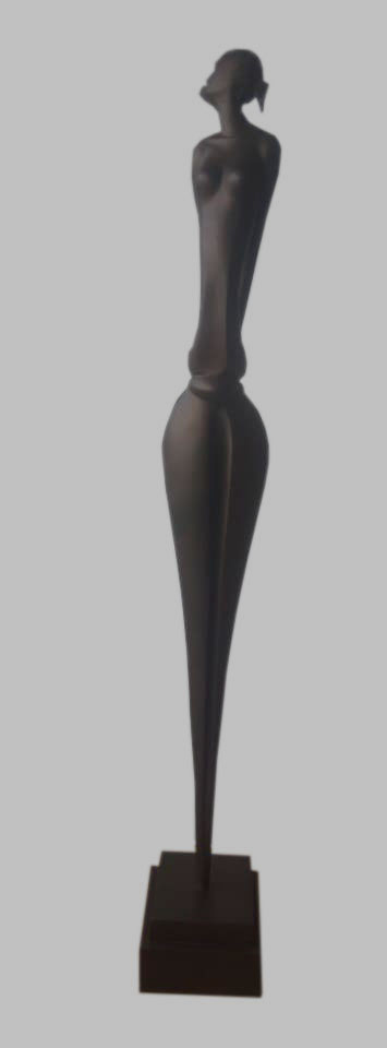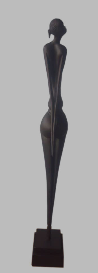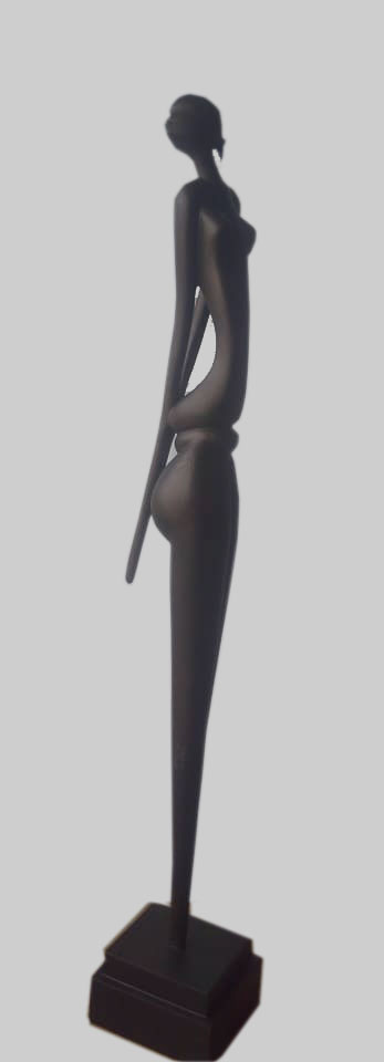 The beauty of a woman is often measured by her height and cute body shape. This glass fibre work employs a minimalist but telling approach and the colour of camwood which is also deliberate, relating directly to ebony blackness.