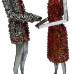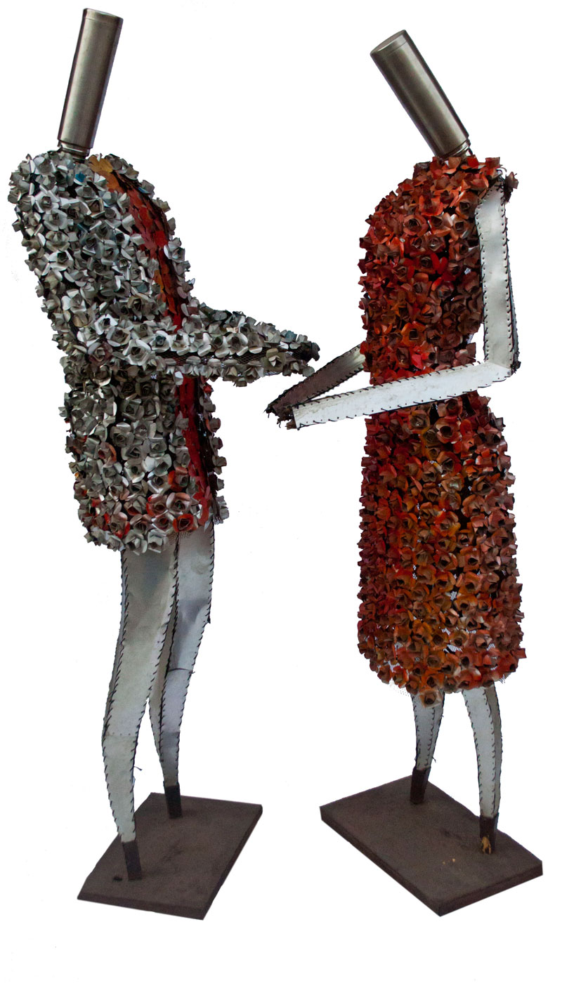 This twin steel and aluminum sculpture is an enactment of the wedding duo and the ceremonies that are celebrated with great pomp each week and all over the country. The expenses and the voluptuous ceremonies notwithstanding, the majority of the marriages are long dissolved while memories of their gigantic society weddings live on.